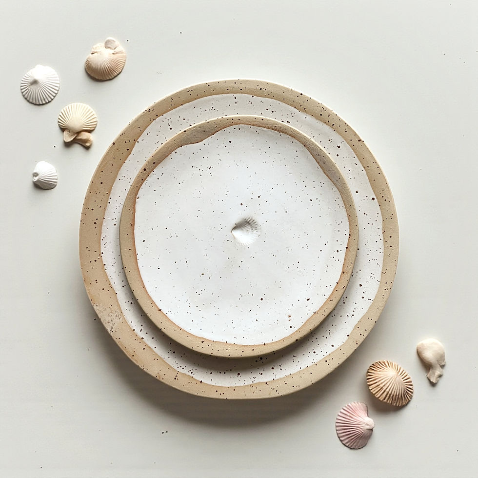 Wykonany z białej gliny szamotowej o surowej strukturze. Na zewnątrz nieregularny wzór nawiązujacy swoją strukturą i kolorem do nadmorskich kamieni. Kamienie na plaży mogą symbolizować spokój i relaks, stanowiąc idealne miejsce do wyciszenia się i odpoczynku.